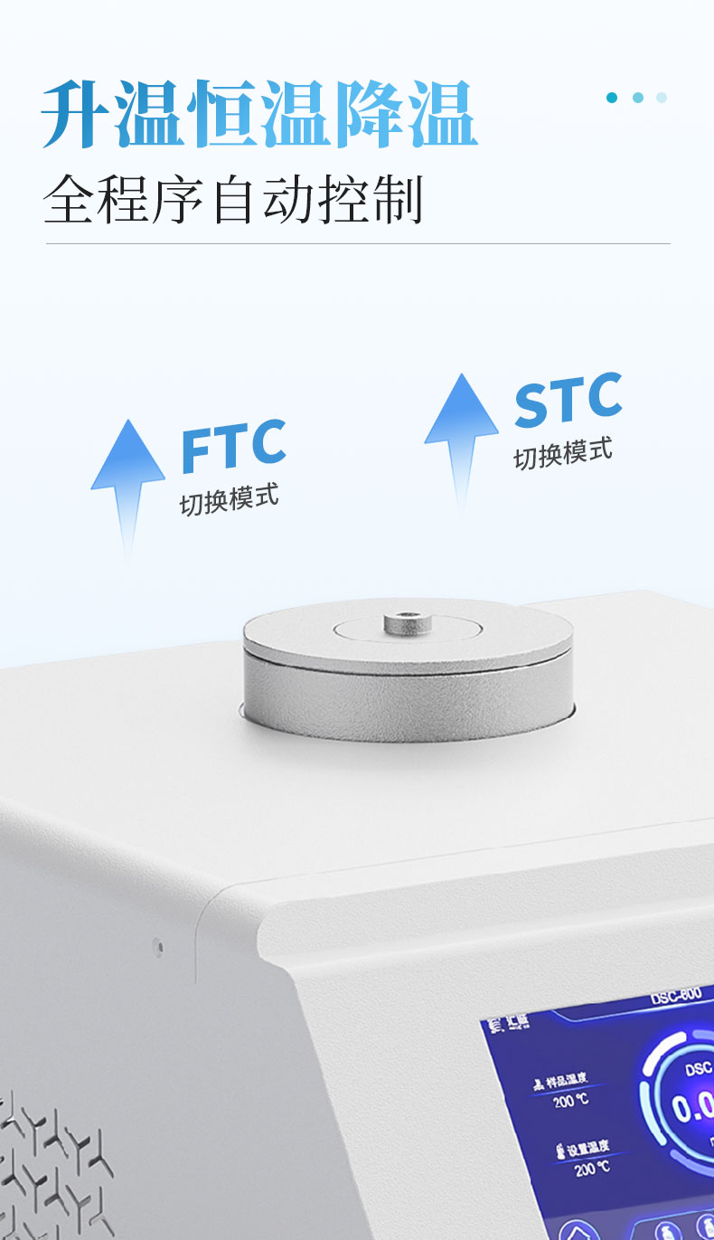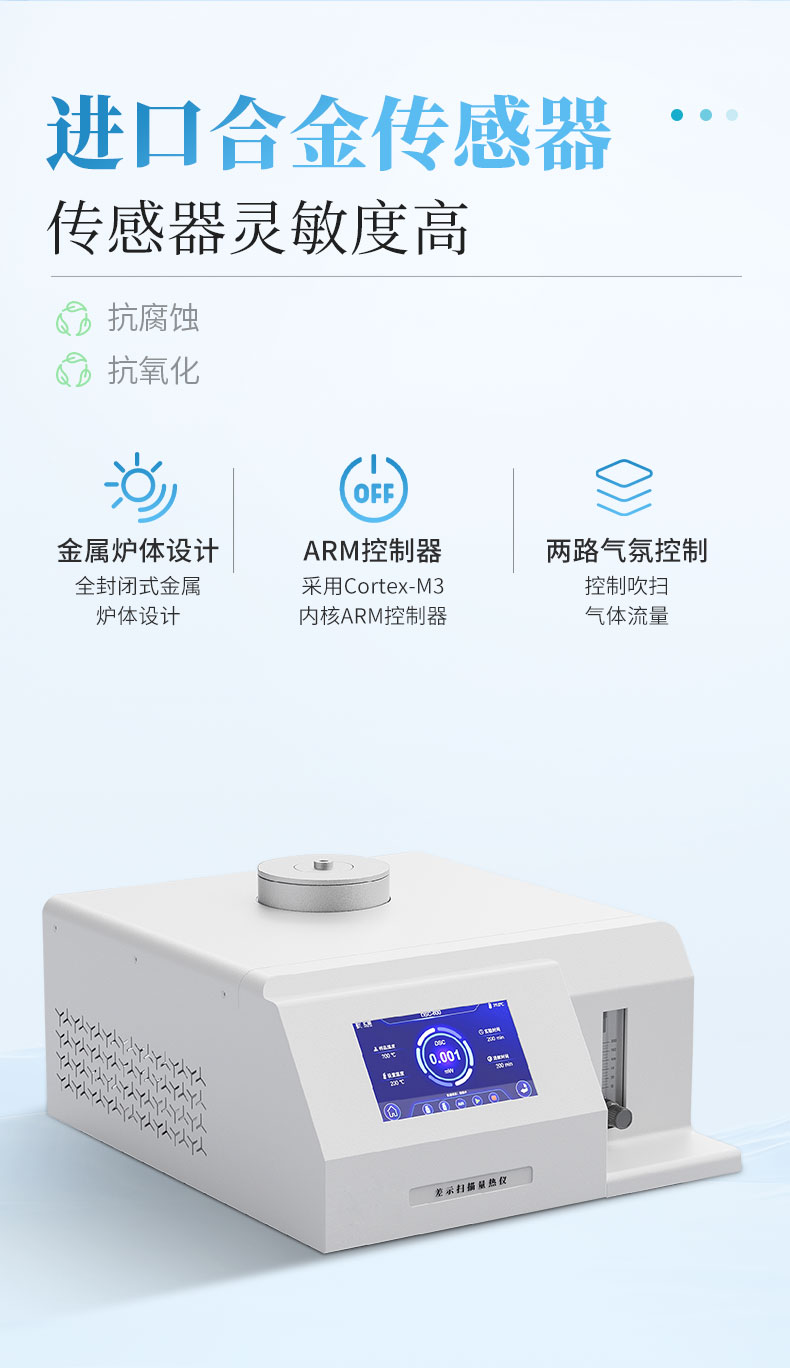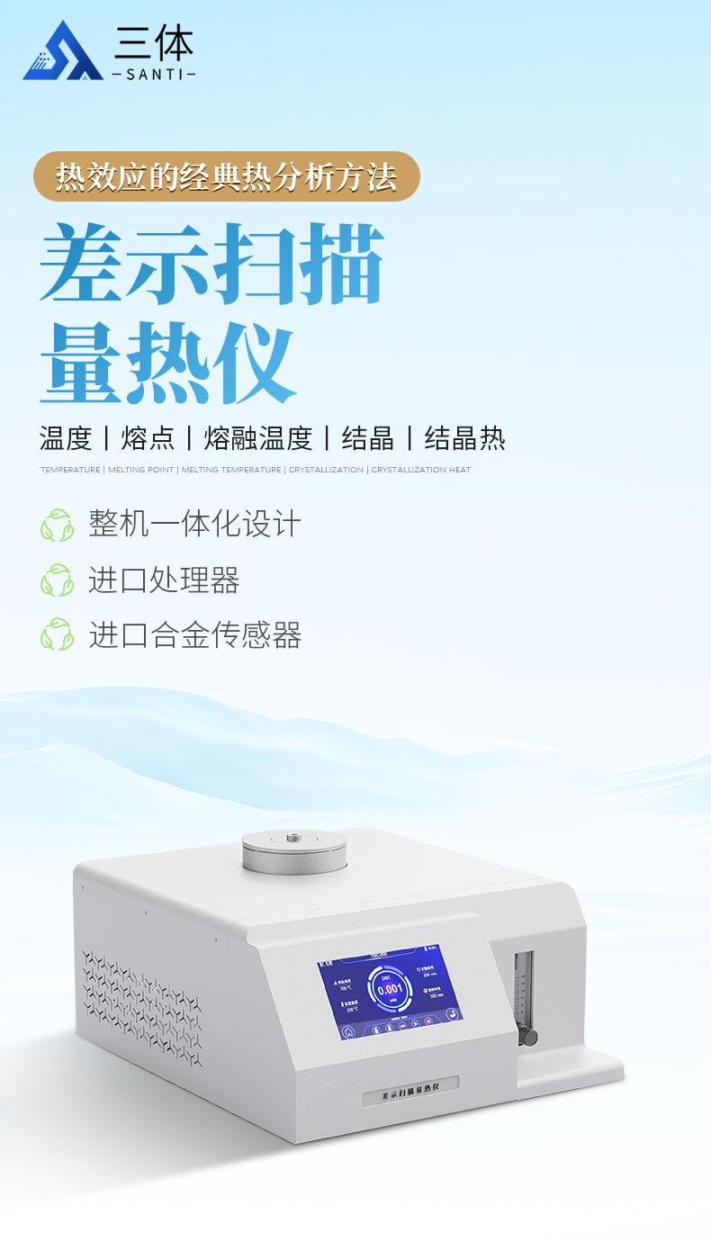 测量与热量有关的物理、化学变化,如玻璃化转变温度、熔点、熔融温度、结晶与结晶热、相转变反应热,产品的热稳定性、固化/交联、氧化诱导期等。