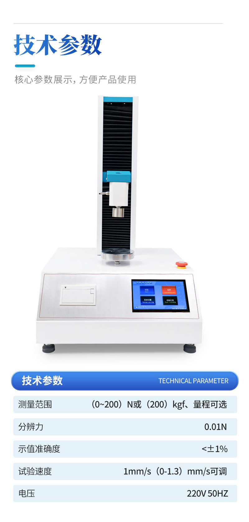 1、采用芯片控制,高精度测力传感器,精度高。