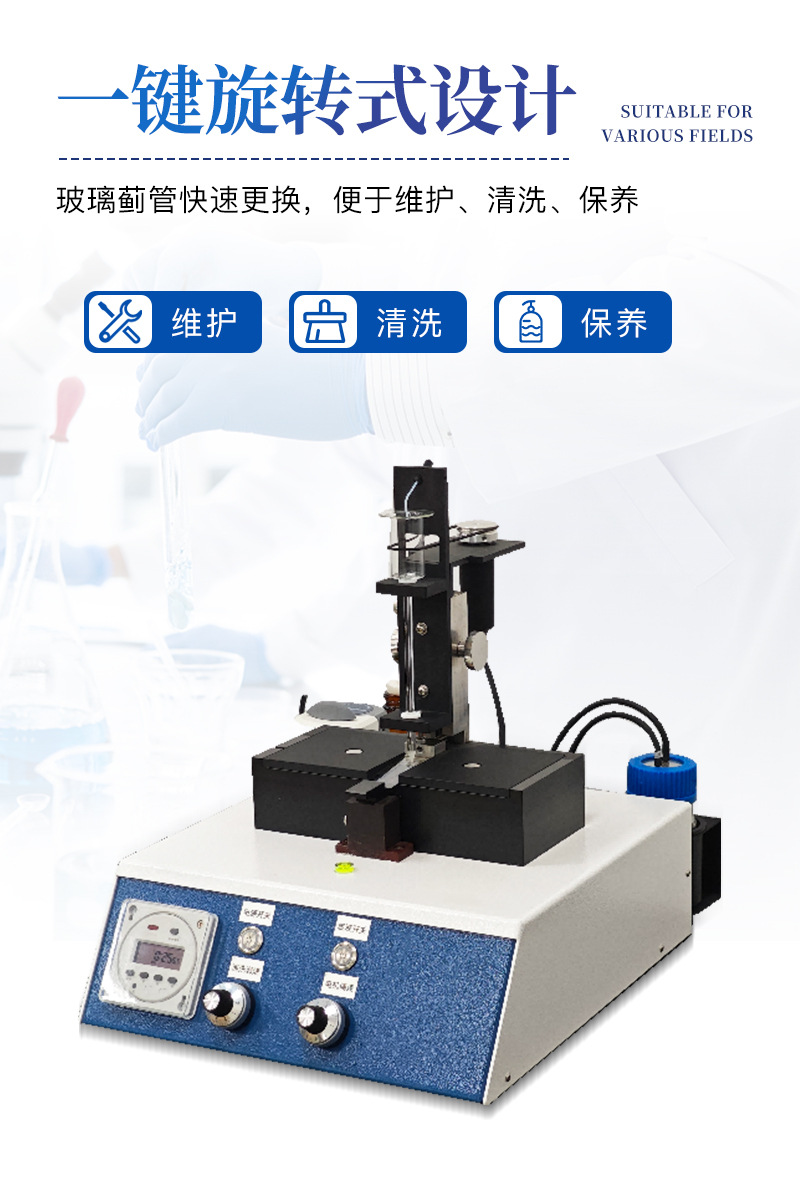 ?。?)一键旋转式设计,玻璃蓟管快速更换,便于维护、清洗、保养;