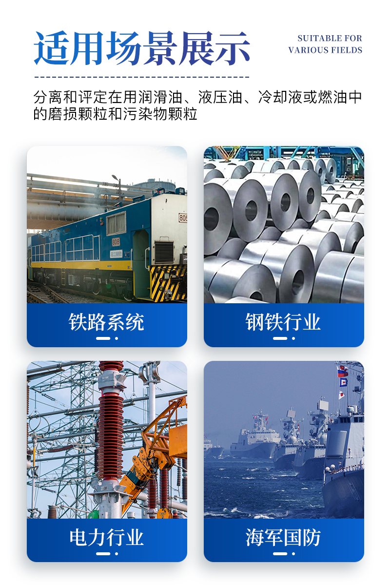 ?。?4)应用范围:用以分离和评定在用润滑油、液压油、冷却液或燃油中的磨损颗粒和污染物颗粒;