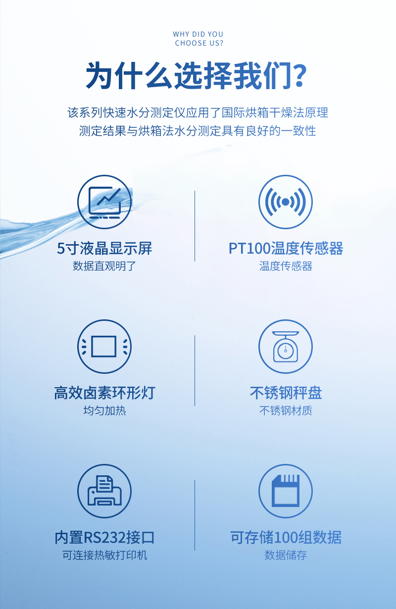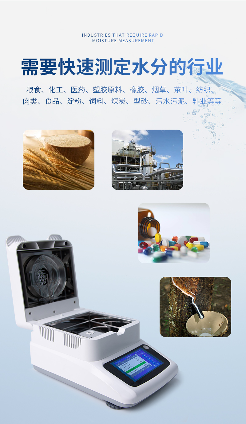 7、用途非常广泛、几乎适用各行业的水分测定;