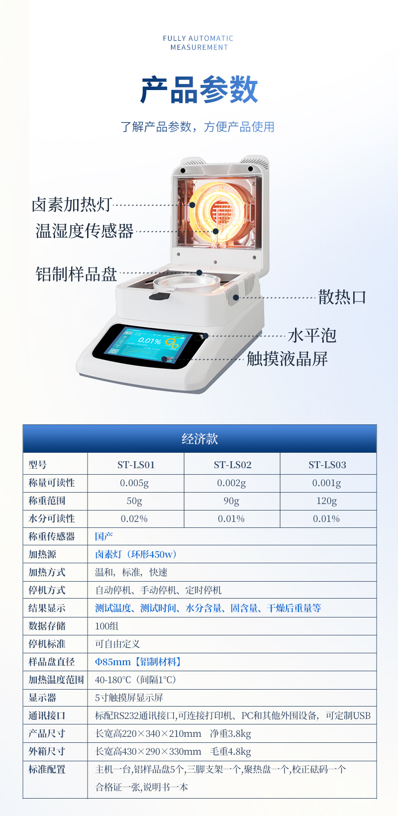 水分可读精度 Moisturereadability | 0.02% | 0.02% | 0.01% | 0.01% |