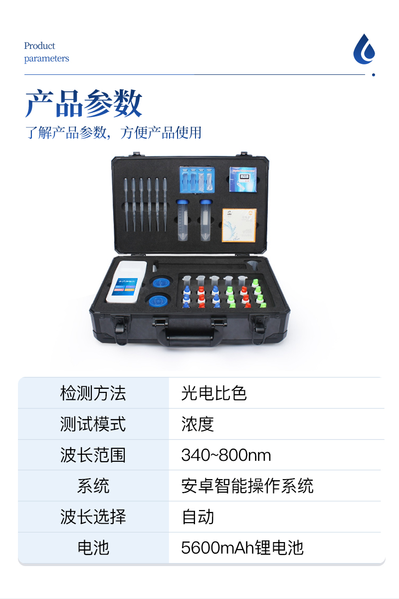 适用于纯净水厂、自来水厂、生活污水处理厂、工业污水、水产养殖、河流监测、游泳场馆、水源保护、生产监测、科研实验等。