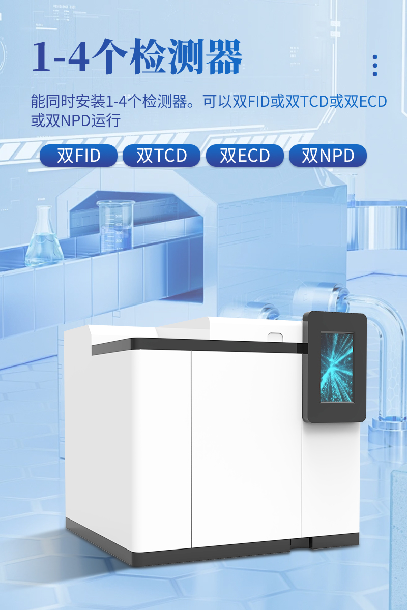 11.能同时安装1-4个检测器。可以双FID或双TCD或双ECD或双NPD运行。TCD带有双路柱后补充气,故可单柱、双柱、毛细管柱使用。